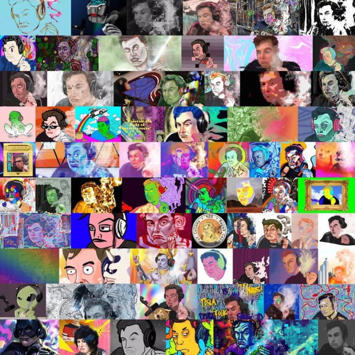 L’immagine, tratta da un episodio del settembre 2018 avvenuto durante la registrazione, è stata reinventata da più di 50 artisti per la serie “Stoned Elon”. I pezzi sono stati venduti questo fine settimana per circa 25.000 dollari in gettoni Rally su Opensea .