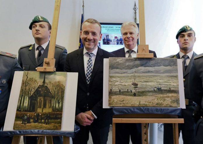 Scheveningen before a storm (1882) and A congregation leaves the Reformed Church of Nuenen (1884-85), stolen in 2002 from the Van Gogh Museum in Amsterdam, were found in 2016 by agents of the Guardia di Finanza, kept in Imperiale parents’ home in a ground of Castellammare di Stabia.